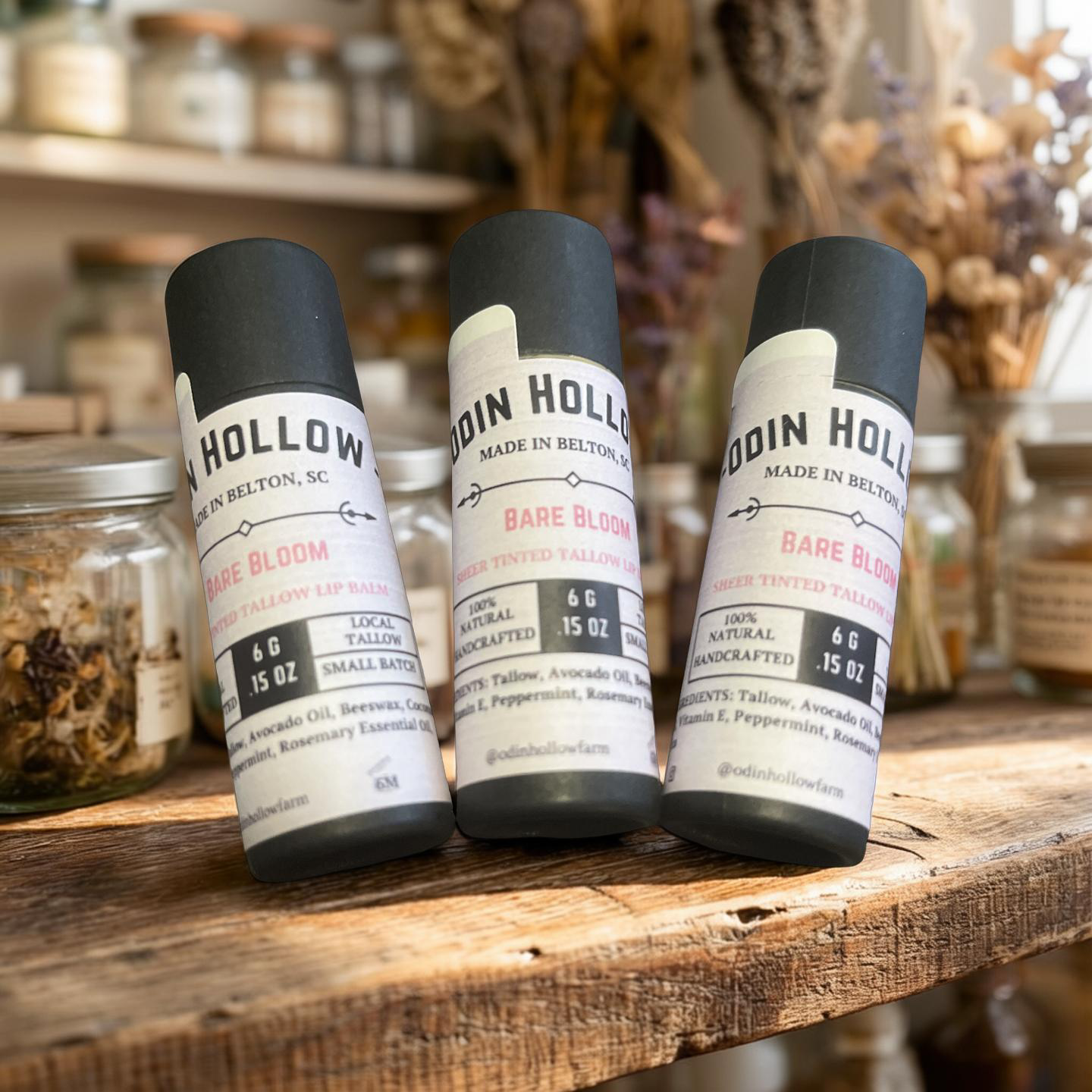 Crafted with grass-fed tallow, beeswax, and nutrient-rich oils, Bare Bloom glides on smoothly and melts into the lips for breathable comfort. Mineral mica provides subtle luminosity and soft pink dimension — never opaque, never heavy.